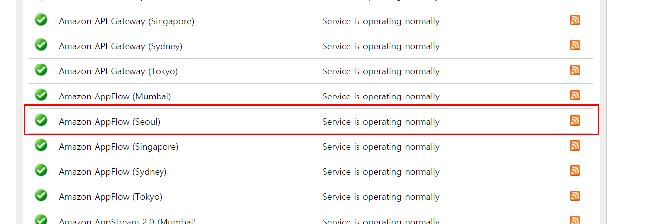 ● 3. 자세히 찾아보면 서비스명과 지역 그리고 서비스 상태를 확인 가능합니다. 그리고 특이한 점은 RSS를 제공합니다.