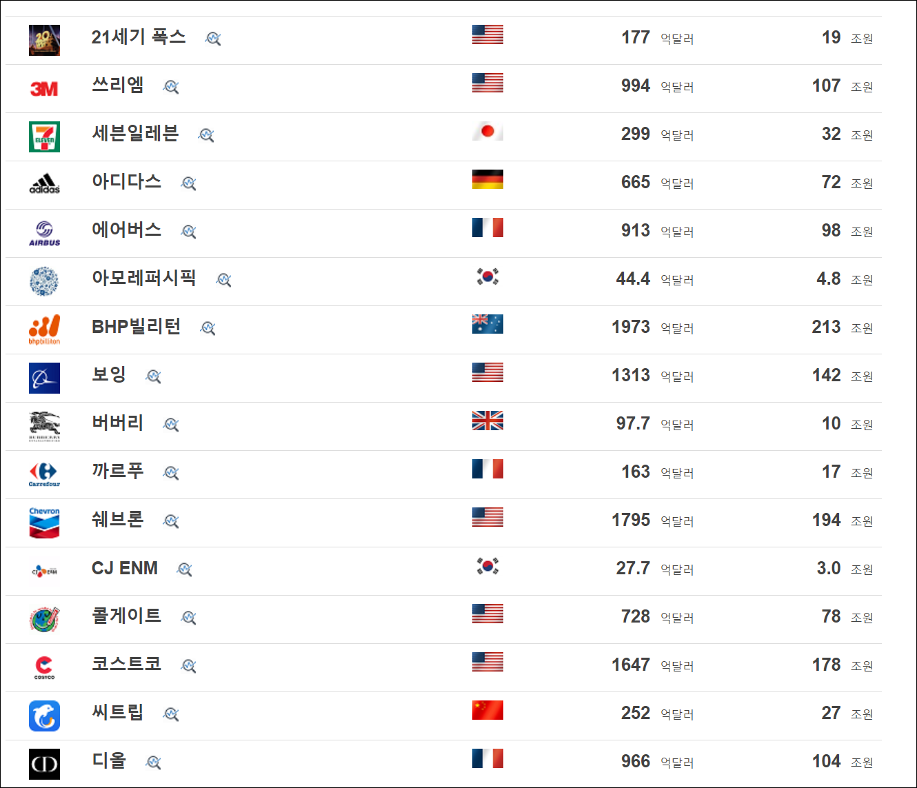 ● 3. 나머지 기업들은 순위대로 정렬하지 않고 알파벳 이름대로 순서가 정리가 되어 있습니다.