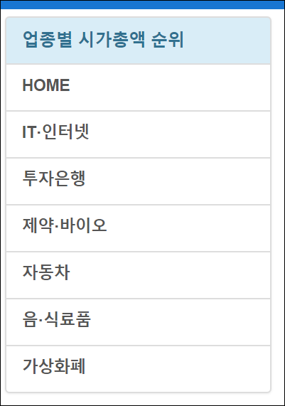 ● 4. 그리고 업종별로 시가총액 순위대로 확인도 가능합니다.