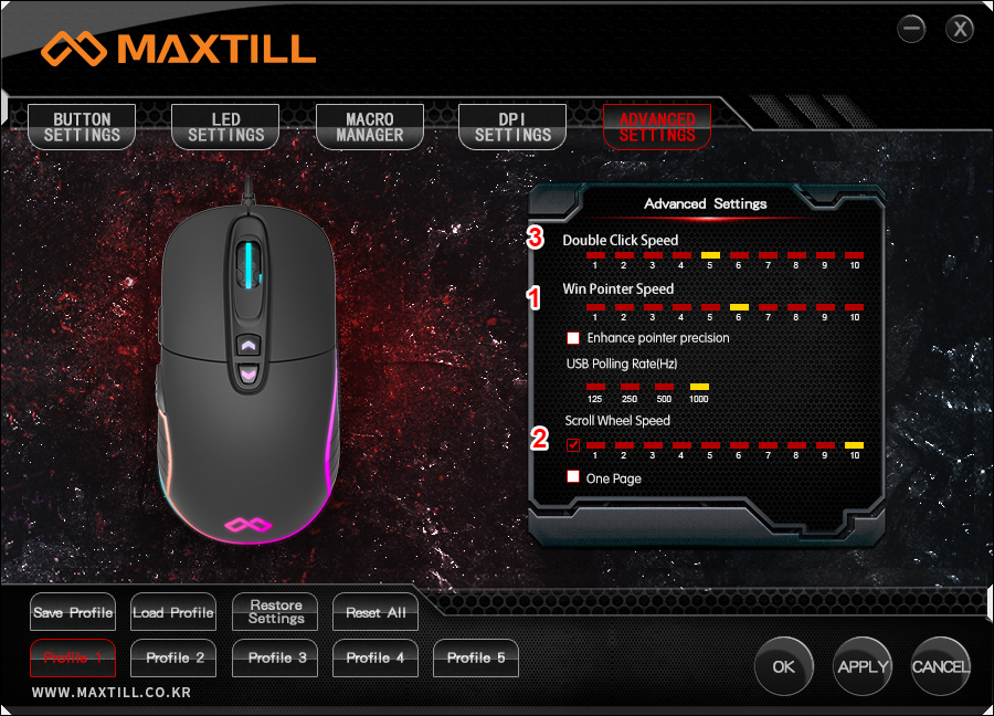 ● 1. 맥스틸 프로그램을 설치하면 마우스 속도와 스크롤 스피드를 설정할 수 있습니다. 물런 윈도우 기본 메뉴에서도 가능하지만 해당 프로그램을 통해 더 쉽고 빠르게 설정이 가능합니다.