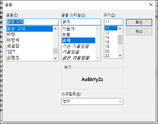 ● 3. 해당 버튼을 누르면 글꼴 선택창이 나타나고 원하는 글씨체를 변경합니다.
