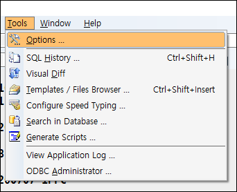 ● 1. SQLDBX에서 Tools에서 options를 클릭합니다.