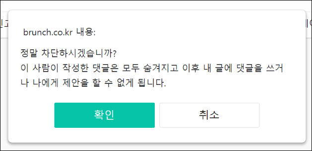 "이 사람이 작성한 댓글은 모두 숨겨지고 이후 내 글에 댓글을 쓰거나 나에게 제안을 할 수 없게 됩니다."