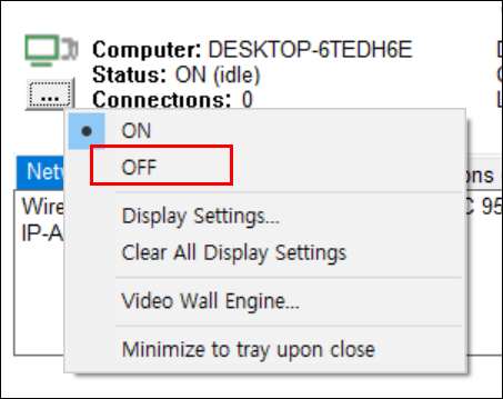 ● 3. 그리고 나오는 ON / OFF에서 OFF를 선택하면 해당 스페이스데스크의 기능을 잠시 꺼둘 수 있습니다.