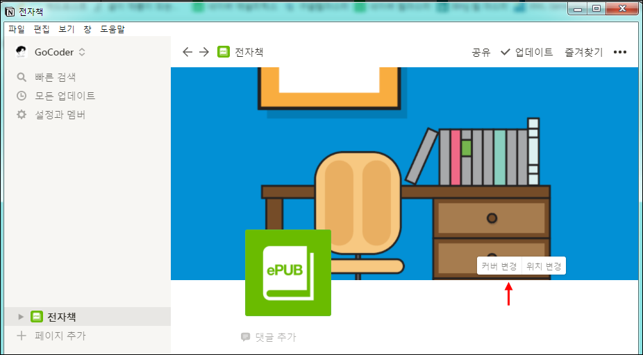 ● 2. 노트를 실행한 다음 상단에 커버 변경을 클릭합니다.