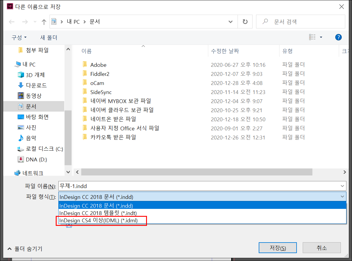 idml로 강제 저장하면 조금 내용이 틀어지더라고요.