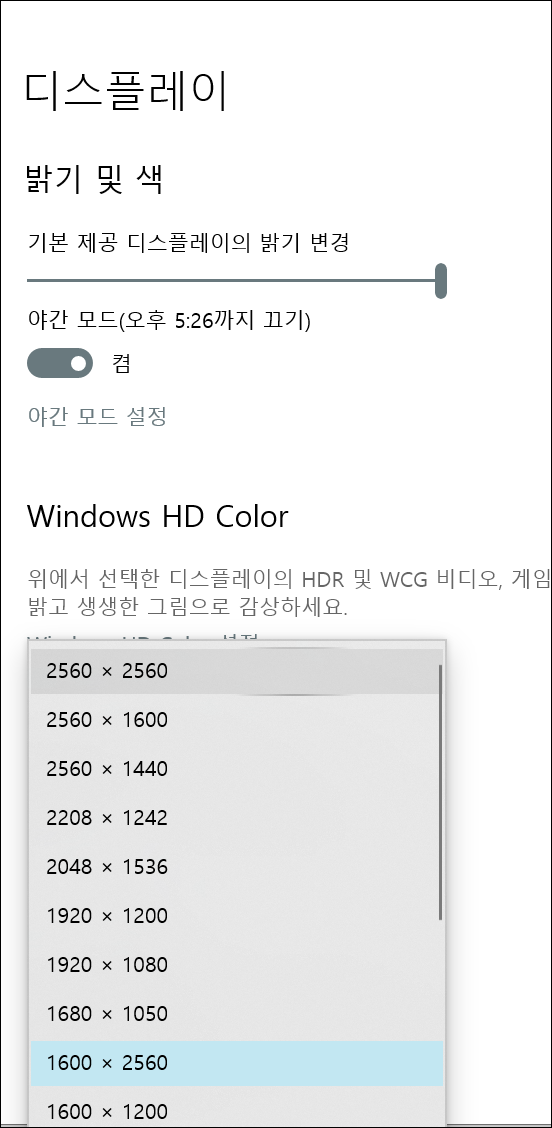 그래도 2560X1600 으로 설정하면 보기 좋습니다.