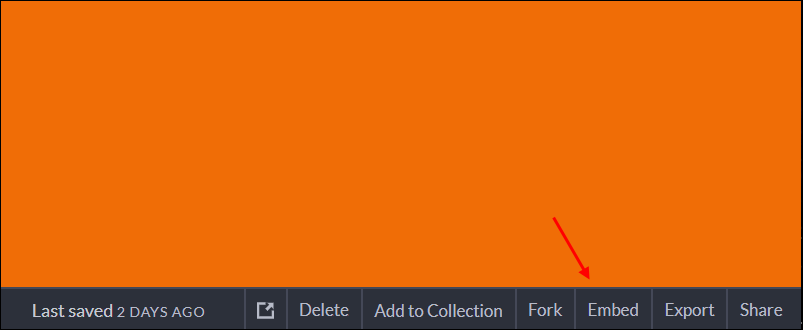 ● 2. 방법은 우선 Pen에 접속해서 embed를 클릭합니다. 해당 기능은 다른 웹페이지에 소스를 심을 수 있게 만들어 줍니다.