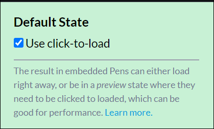 ● 8. Use click-to-load를 체크하면 실행창에 모습이 바로 노출되지 않습니다.
