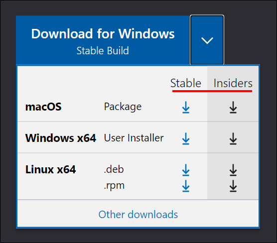 ● 2. Insiders은 최신 버전의 기능을 먼저 사용할 수 있는 제품을 말합니다. 이때 특징은 아직 불안정한 기능과 버그가 나타날 수 있습니다. 그래서 일반적인 경우에는 다운로드를 추천하지 않습니다. 최신 프로그램이 필요한 일부의 사람들에게 필요한 프로그램듯 합니다.