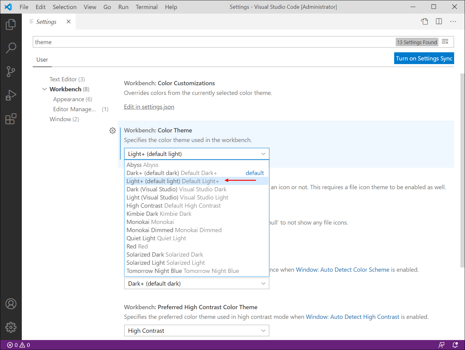 ● 4. 다양한 테마 중에 Light+를 선택하면 좀 더 밝은 테마도 선택이 가능합니다.