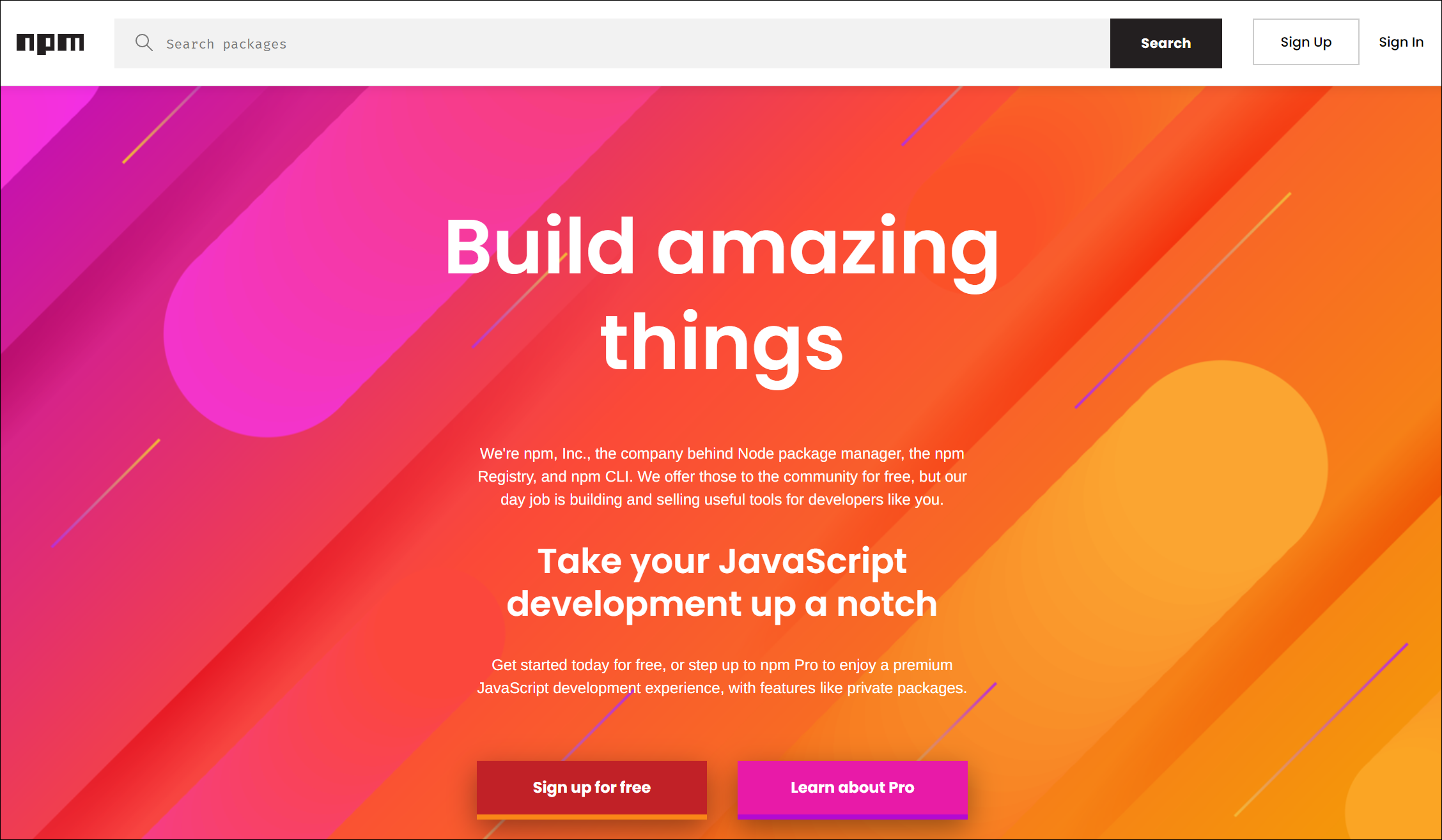 ● 2. 그런데 이 npm를 관리하는 주체가 사이트를 운영하고 있습니다. 그래서 이 사이트를 방문하면 좀 더 쉽게 어떤 패키지들이 있는지 서핑할 수 있습니다. 어떤 npm을 다운로드하기 전에 다른 개발자의 평가나 설명서를 읽어 볼 수 있습니다. 아래 URL로 접속하면 해당 페이지가 나타납니다.