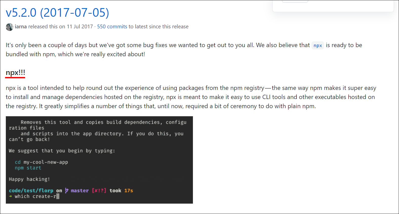 ● 1. npm은 많이 들어봤지만 npx라고 하면 개발자분들도 헷갈려하시는 경우가 있습니다. 혹은 오타로 생각하기도 합니다. 하지만 npx는 npx v5.2.0 버전부터 제공하는 명령어입니다. 그러므로 실수도 아니고 우리가 사용 가능한 명령어 입니다.