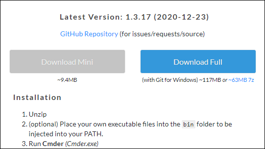 ● 4. 사이트 중간에는 두 가지 버전의 cmder를 제공합니다.