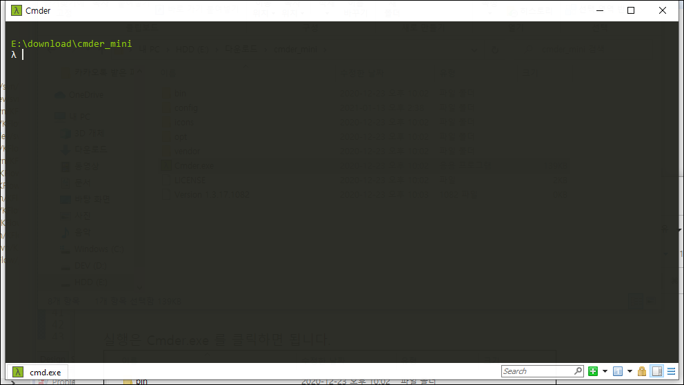 ● 6. 실행은 Cmder.exe를 클릭하면 됩니다.