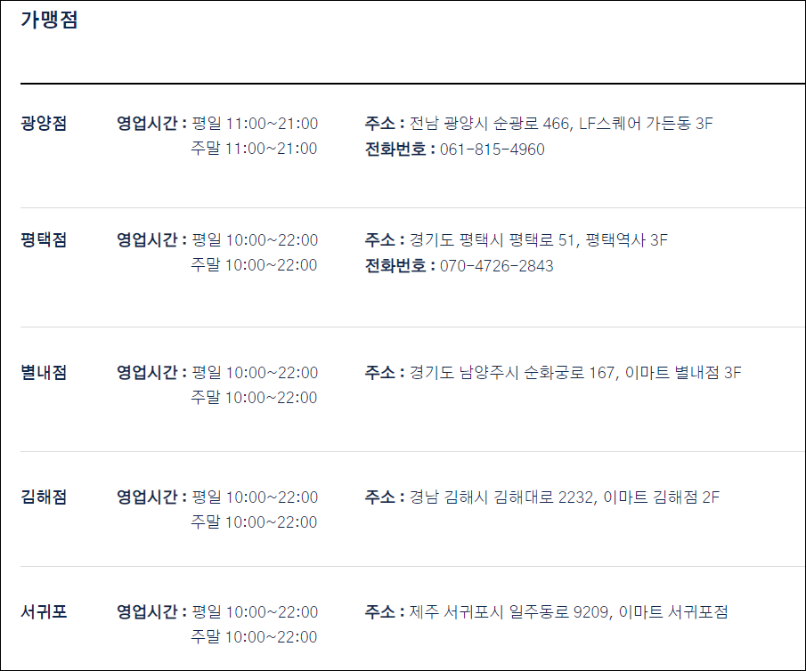 ● 3. 특이한 점은 지점이 아닌 가맹점은 따로 내역을 모아두었습니다.