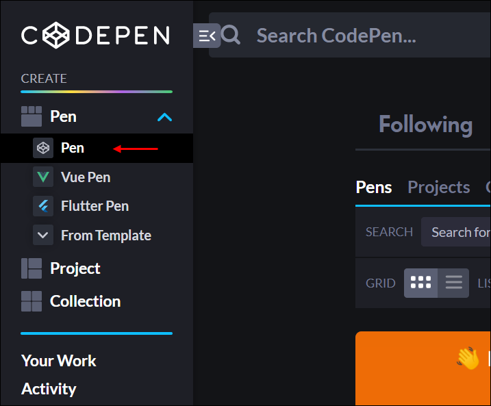 ● 2. 코드펜을 로그인하고 Pen을 생성합니다. 무료 사용자도 사용이 가능합니다.