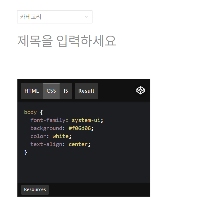 ● 1. 코드펜의 에디터를 티스토리에 붙여 넣어서 보여주는 방법을 알아보겠습니다. 특히 코딩을 강의하는 블로거들에게는 아주 좋은 방법이 될 거라 생각합니다.