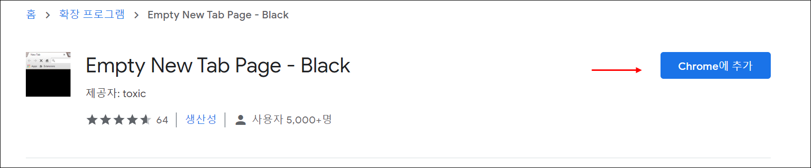 ● 2. 크롬으로 해당 프로그램인 Empty New Tab Page - Black로 접속합니다. 그리고 해당 프로그램을 설치를 합니다. 단순히 "Chrome에 추가"만 클릭해주면 됩니다.