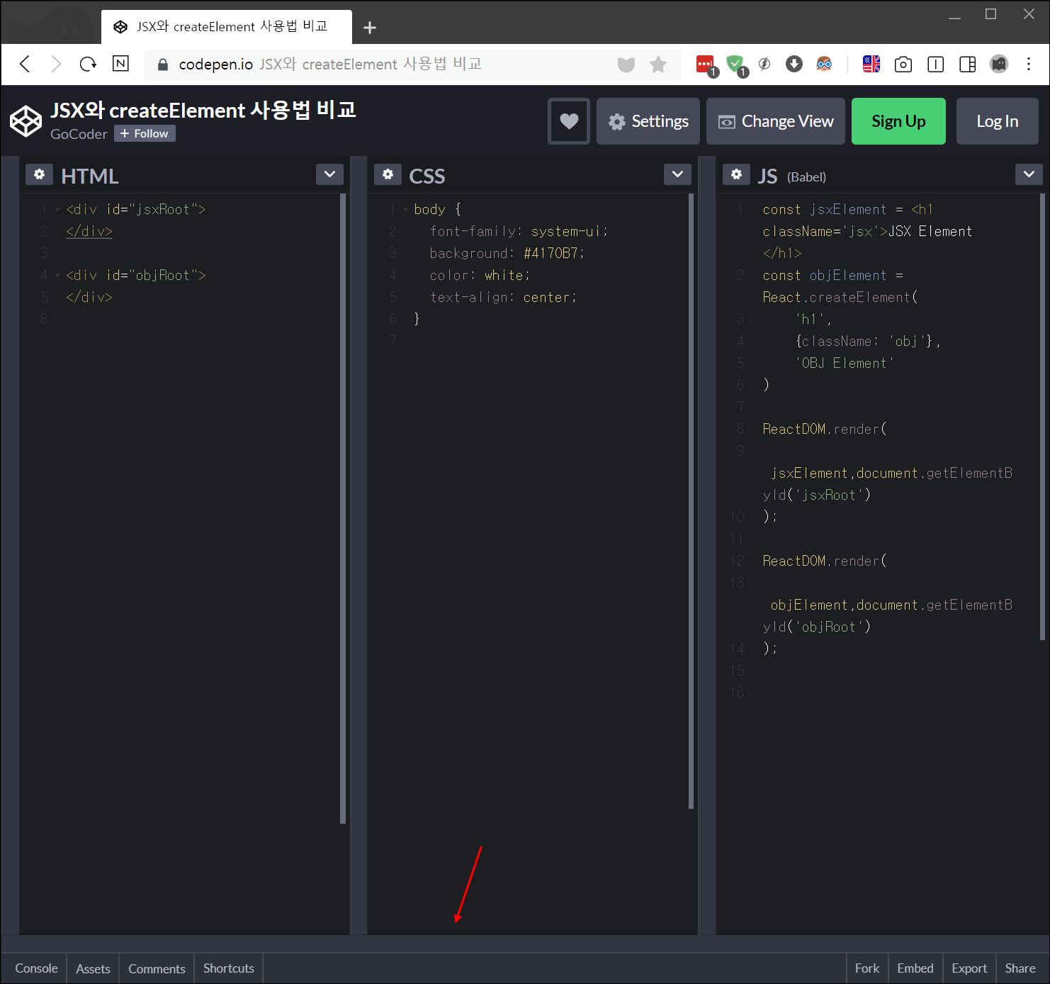 ● 3. 혹시 코드펜에서 코딩하시다가 프리뷰가 안 보이는 분들은 만 아래에 바를 클릭하여 올려 보세요..