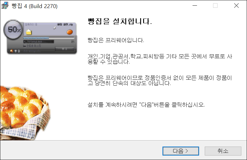 ● 1. 무료 압축 프로그램 대명사 빵집을 기억하시나요? 한참 유료 압축 시장이 성장할 때 뜬금없이 무료로 배포해버린 빵집 개인 개발자가 만든 작품이었습니다. 회사에서도 PC방에서도 빵집을 사용할 만큼 인기가 있었는데 대용량 파일을 해제할 때 오류가 있어서 바꿨던 기억이 납니다. 오랜만에 빵집 정보를 찾아보니 개발이 중단되었습니다.