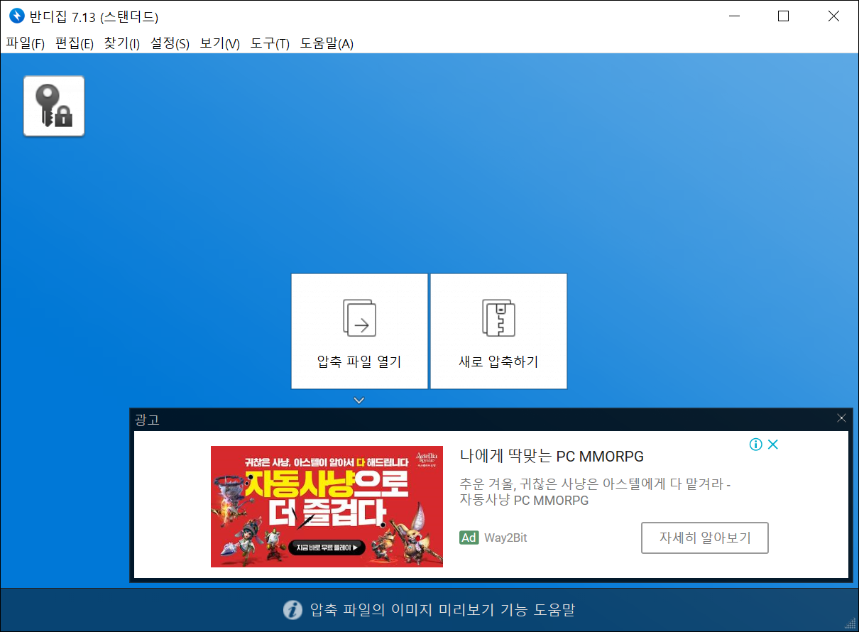 ● 1. 반디집은 어느새부턴가가 광고가 뜨기 시작합니다. 이유는 정말 간단합니다. 먹고살아야죠. 그래도 프로그램 사용료를 받지 않고 유료로 풀어주는 것만으로도 감사합니다. 하지만 이렇게 가끔씩 뜨는 광고가 눈에 거슬릴 수 있습니다.
