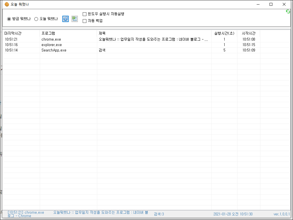 ● 1. 재밌는 프로그램을 하나 발견해서 공유합니다. 컴퓨터 사용 내역을 알 수 있는 프로그램입니다. 오늘 하루 무엇을 했는지 알 수 있어서 개발자는 업무일지를 도와주는 프로그램이라고 소개합니다.