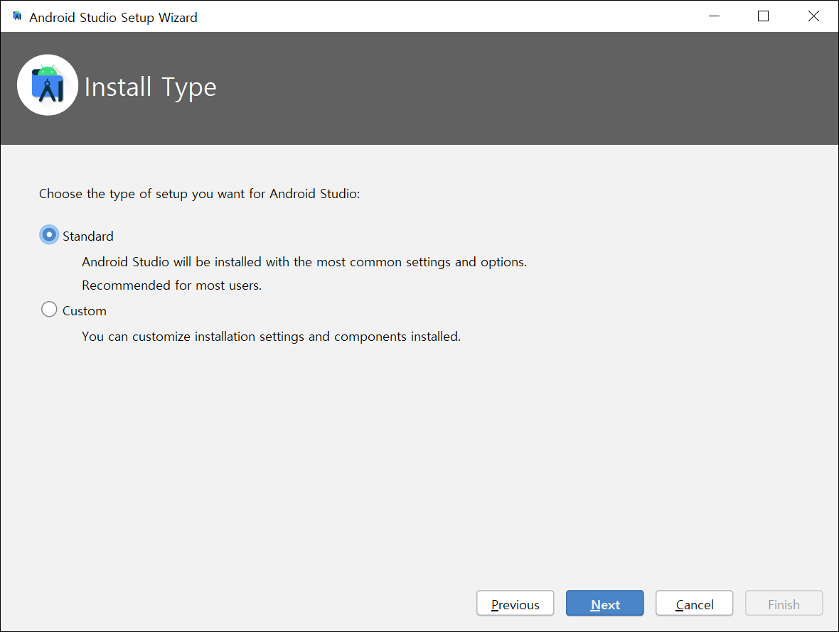 ● 11. 기존의 안드로이드 스튜디오 세팅 파일이 있다면 폴더를 선택하고 없다면 기본 그대로 OK를 클릭합니다.