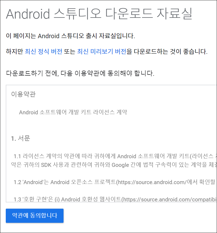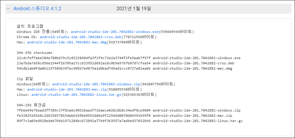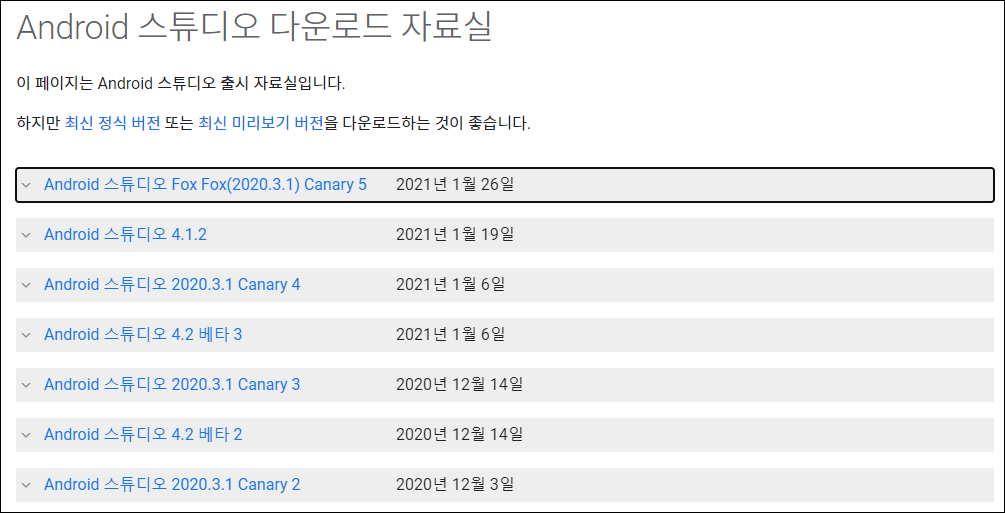과거 버전 안드로이드 스튜디오 프로그램 버전 다운로드