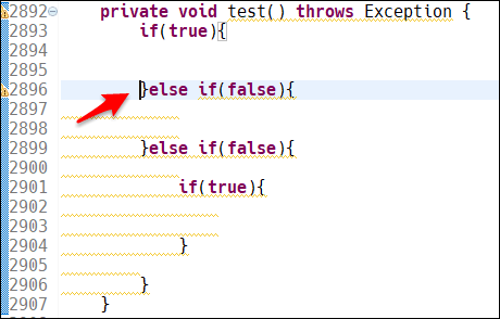 ● 1. 이클립스에서 소스코드를 작성하다 보면 복잡도가 상승하게 됩니다. 그래서 괄호들이 난무하게 되는 정글 소스로 변해버립니다. 하지만 이 괄호는 매우 중요합니다. 소스 블록을 착각하고 개발하면 일명 망하는 코딩이 되기 때문입니다.