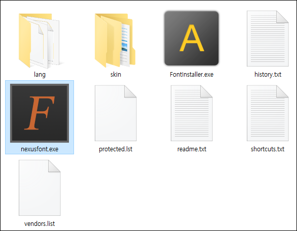 ● 4. 압축 해제하고 파일 리스트에서 nexusfont.exe를 클릭합니다. 이미 설치가 되어 있기 때문에 실행 파일만 클릭하면 실행이 가능합니다.