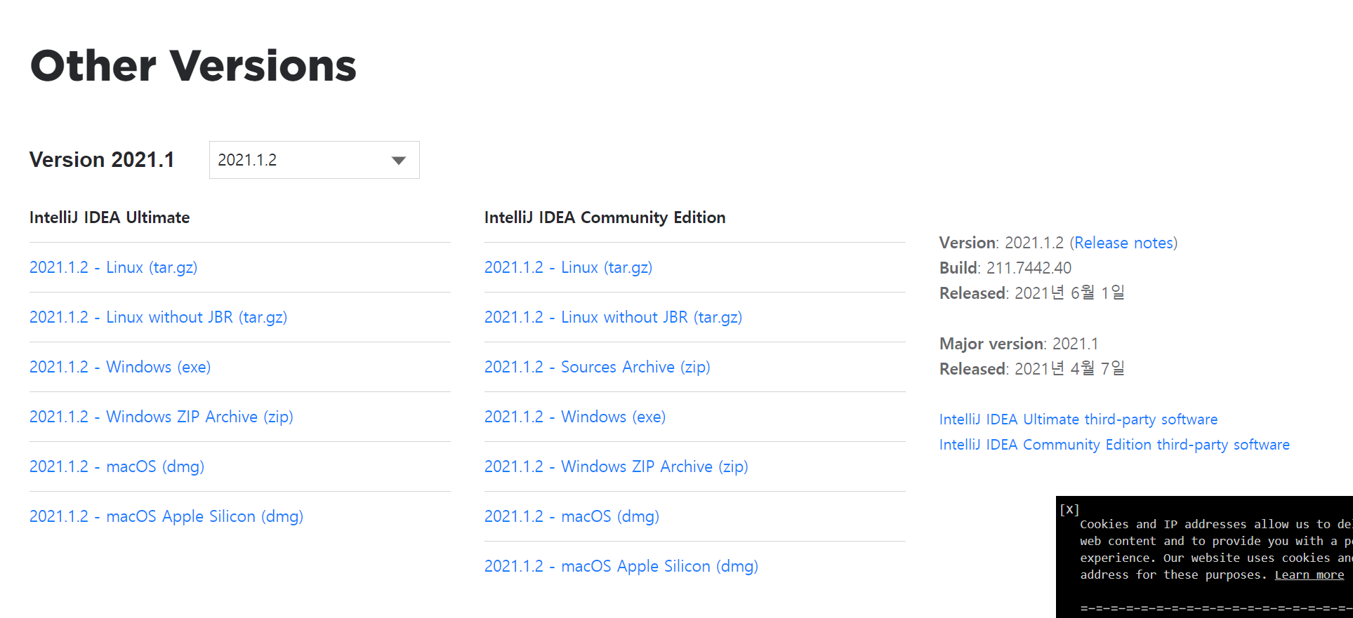 https://www.jetbrains.com/ko-kr/idea/download/other.html