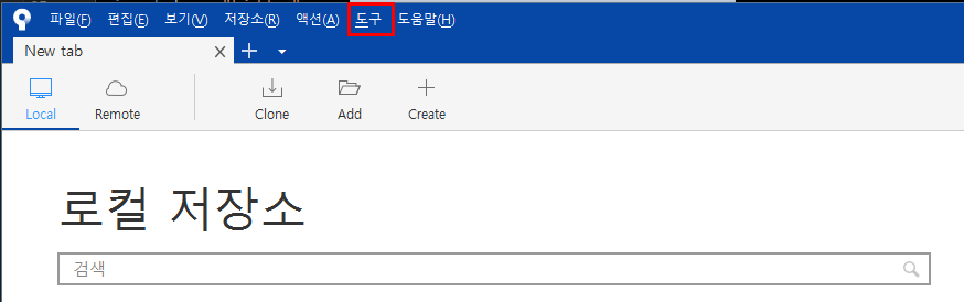 ● 2. 소스트리를 실행 후에 "도구"를 클릭합니다.