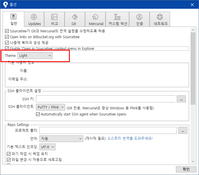 소스트리 어두운 화면으로 변경