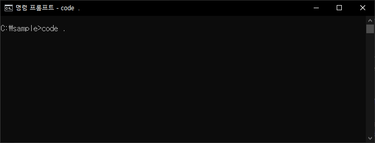 ● 2. 그리고 프로젝트가 있는 폴더라면 "." 하나만 추가하면 해당 폴더를 프로젝트로 실행이 가능합니다. 프로젝트가 있는 폴더로 이동 후에 "code ." 을 입력합니다.