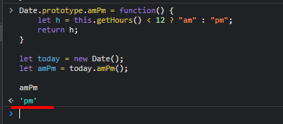 let h = this.getHours() < 12 ? "am" : "pm";