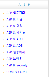● 2. 해당 사이트에서는 순서대로 ASP를 익힐 수 있도록 강의가 올라와 있습니다. 작성일이 20년 전이지만 ASP 언어도 여전히 그대로이기 때문에 사용이 가능합니다.