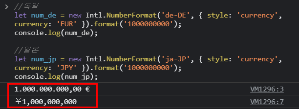 let num_de = new Intl.NumberFormat('de-DE', { style: 'currency', currency: 'EUR' }).format('1000000000');