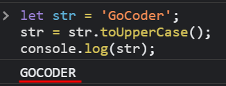 문자열을 대문자로 변경하는 방법입니다. 단순하게 변수 뒤에 .toUpperCase()를 사용하면 손쉽게 변경이 가능합니다.