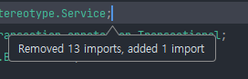 ● 3. 해당 단축키를 사용하면 "Removed 13 imports, added 1 import" 이런 식으로 삭제한 import의 숫자를 카운팅 해줍니다.