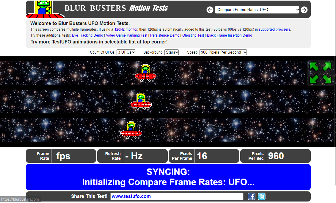 Blur Busters TestUFO Motion Tests. Benchmark for monitors & displays.