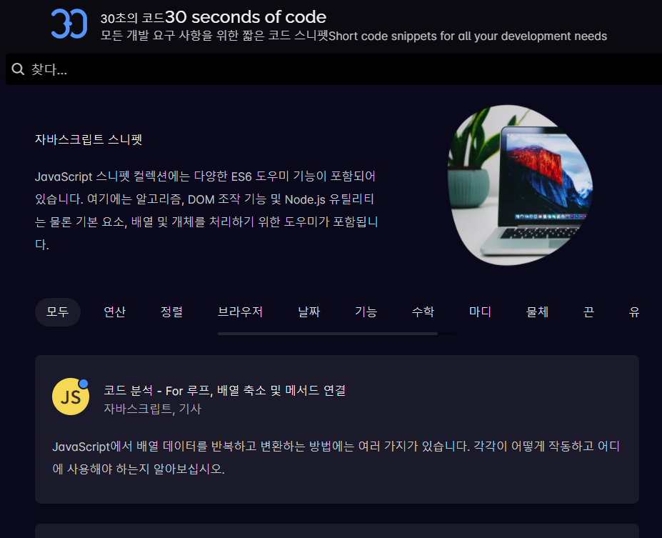 짧은 코드가 모여, 큰 코드가 되고, 큰 코드가 모여 웹이 됩니다. 그래서 짧고 굵은 소스 코드는 언제나 도움이 됩니다. 이번 시간에는 해외 사이트이지만 짧고 유용한 코드를 모아둔 사이트를 소개합니다.