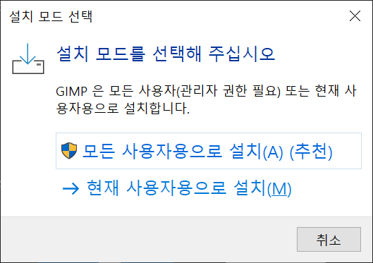 ● 4. "설치 모드를 선택해 주십시오"에서 "모든 사용자용으로 설치"로 선택해서 설치를 하시기 바랍니다.
