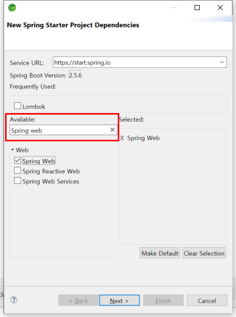 ● 2. 우선 디펜더시를 추가해야 합니다. "Spring web"이라는 의존성이 필요로 합니다. 이를 추가합니다.