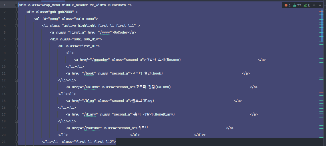 인텔리제이에서 정렬을 원하는 소스를 드래그해서 모두 선택합니다. 그다음은 해당 단축키를 클릭합니다.