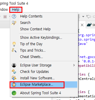 ● 2. 이클립스에서 HELP -> Eclipse marketplace로 이동합니다.