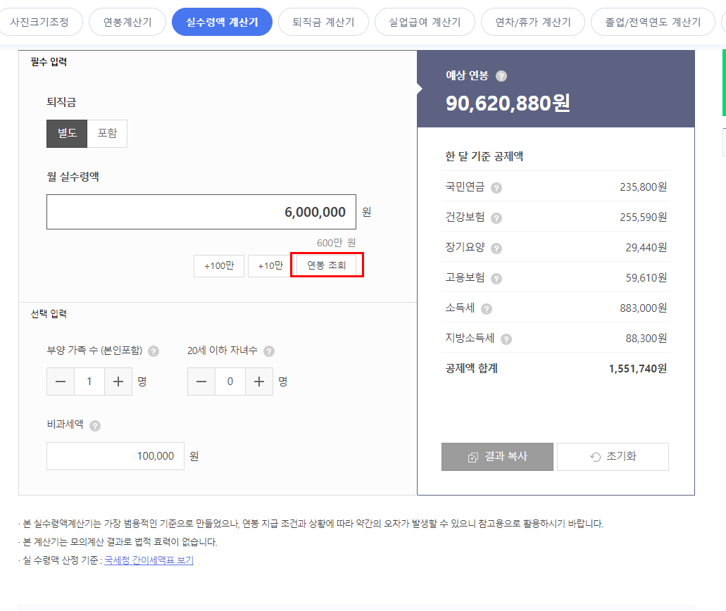 ● 3. 실수령액을 넣고, 연봉 조회 버튼을 누르면 예상 연봉이 나타납니다. 600만 원이면 연봉으로 실수령액을 받으려면 9천만 원 정도 되네요. (의미 없는 비교지만)