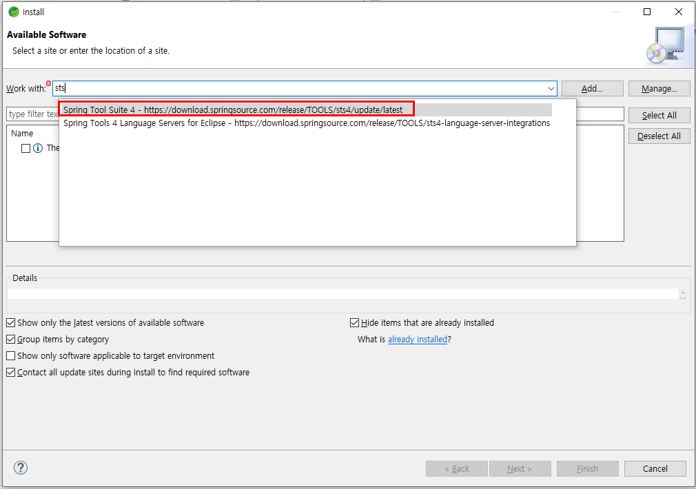 ● 1. STS 환경 설정에서 web이라는 탭 메뉴가 보이지 않을 때 추가적으로 확장 프로그램을 설치하는 방법을 알아보겠습니다.