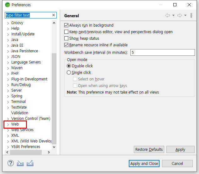 ● 7. 이제 web 메뉴가 보이기 시작합니다.