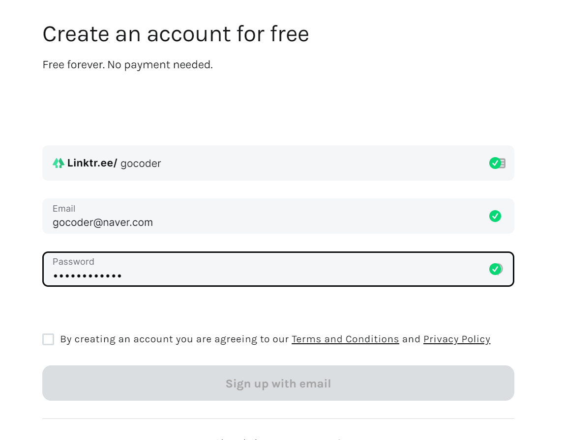 ● 1. 다양한 링크를 모아주는 링크트리 서비스 가입을 한번 해보겠습니다. 해당 https://linktr.ee/register 클릭하여서 가입 페이지로 이동 합니다.